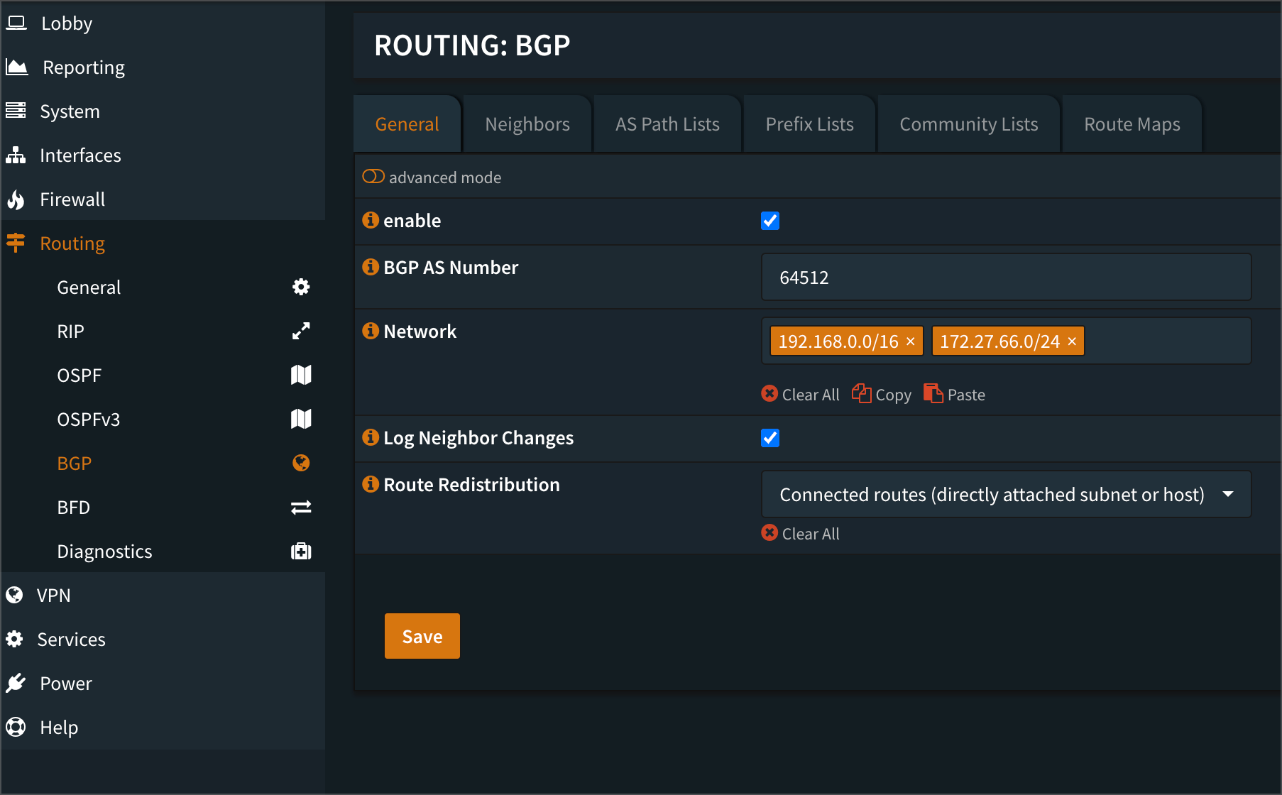 os-frris installed, refresh the page and navigate toRouting > BGP